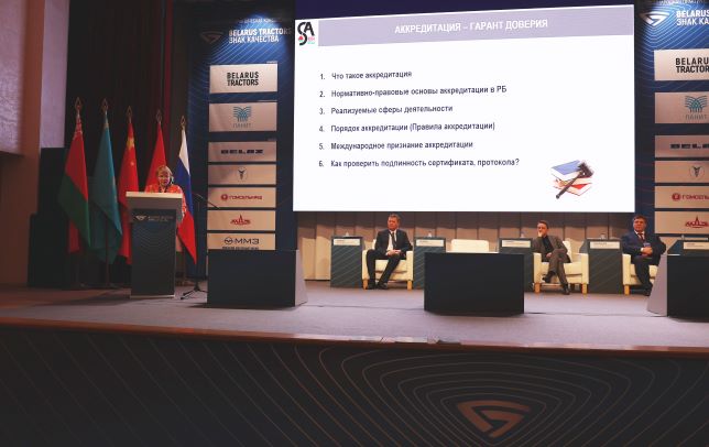 Представитель Белорусского государственного центра аккредитации - заместитель директора по аккредитации Елена Булавина выступила с докладом на тему: «Аккредитация – гарант доверия к деятельности органов по сертификации и испытательных лабораторий». В рамках выступления участники мероприятия получили ответы на вопросы «Что такое аккредитация?», в соответствии с какими нормативными правовыми актами и в каких сферах она осуществляется, а также какие в Республике Беларусь и на международном уровне существуют инструменты для проверки подлинности сертификата и/или протокола.