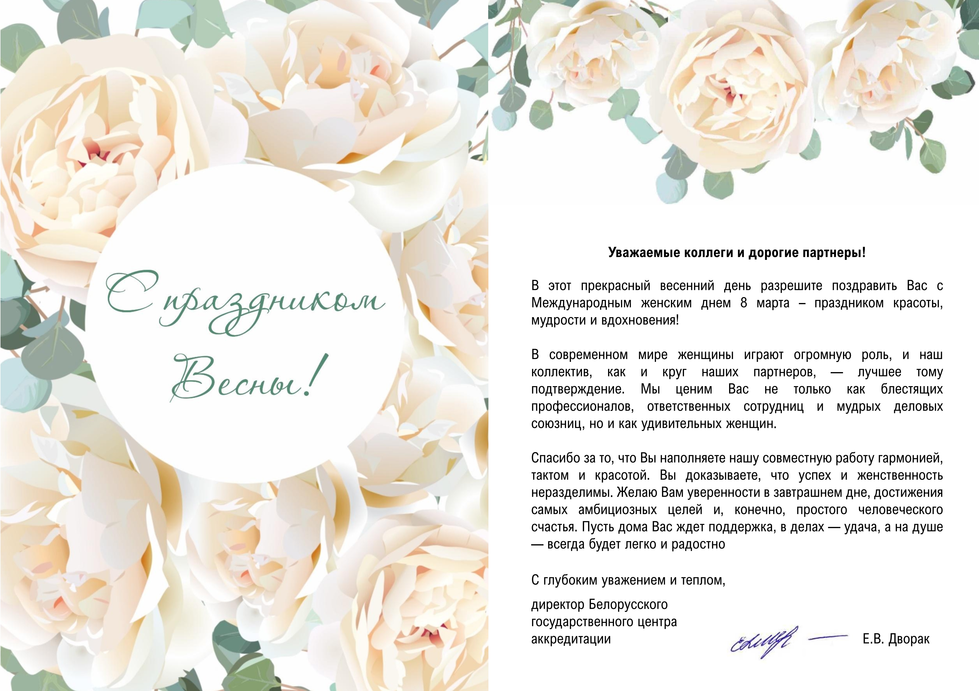 Поздравление директора БГЦА с Международным женским днем 8 марта